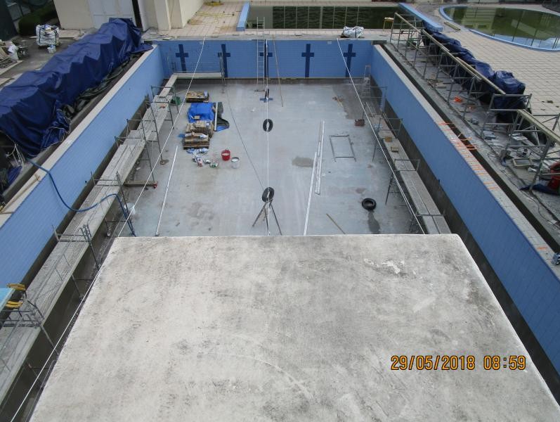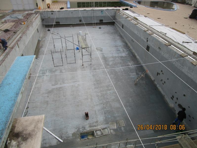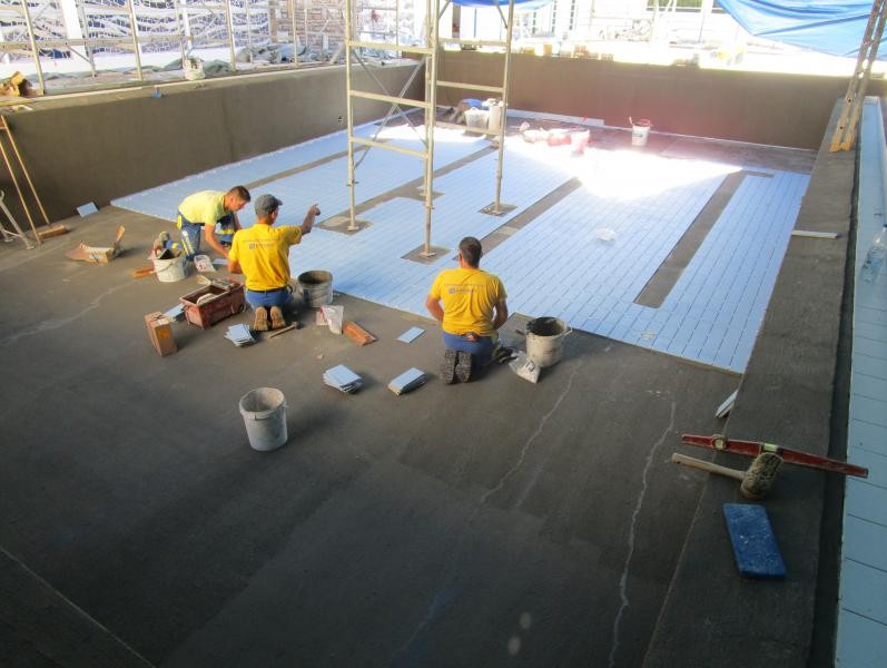 - Pose des carrelages et faïences des 3 bassins et pédiluve.