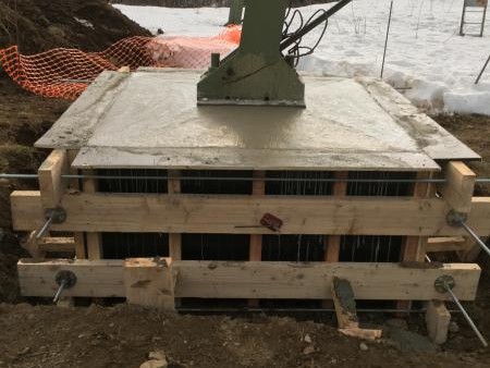 - Coffrage et coulage de béton autour des massifs existants.